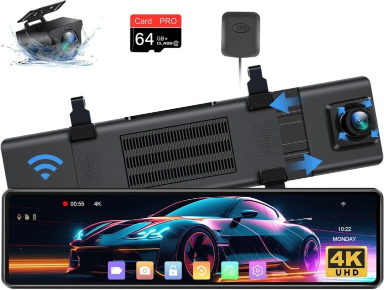 【64G SD Card & New Screen Material& Type-C Port】The 4k mirror dash cam front and rear is equipped with 64GB SD Card, recording storage of more videos.With the latest black glass screen, it effectively absorbs and scatters light, reducing reflections and reflections. Improve driver safety.4k digital rear view mirror equipped with GPS auto calibration time, no need to spend effort to set up. The main interface of the rearview mirror backup camera can display the driving speed, it’s a great gift