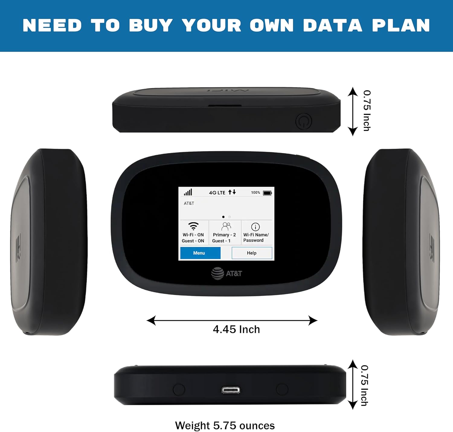 You Have to Buy Data Plan – here are the AT&T tariffs: 55$ for 50 GB included, 90$ for 100 GB included; high speed mobile Internet with Global Compatibility – mobile hotspot device offers personalized, secure Wi-Fi with near 5G speed up to 1200 Mbps; actual speeds of portable wifi depend on your operator’s network; this hotspot features 17 LTE and 5 3G frequency bands, making it compatible with Verizon, T-Mobile and most American carriers; unlocked to use globally more than 180 countries