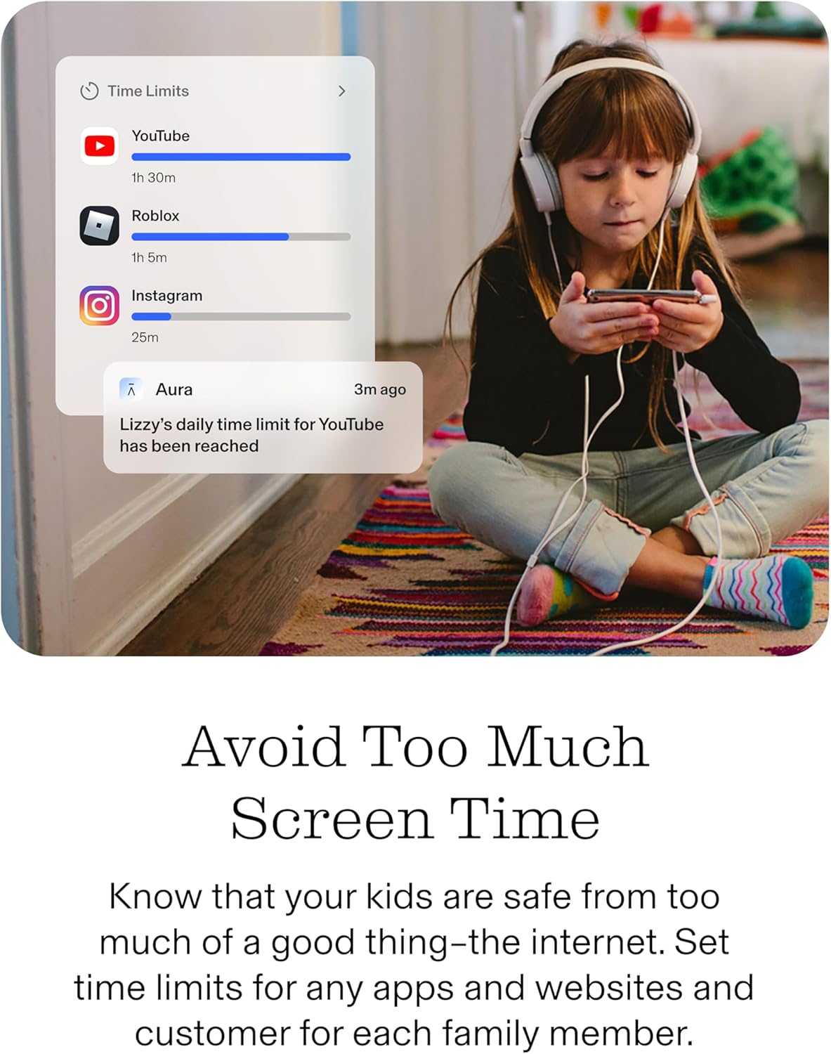 Yes, Aura can manage access and set time limits for popular sites and platforms, such as Facebook, Fortnite, Instagram, Netflix, Snapchat, YouTube, and more.