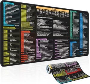 Waterproof Mouse pad—Excel Cheat Sheet Desk pad—Contains 7 Common Office Software Shortcuts Such as Excel, Word, Chat GPT,etc—Large XXL(35.45″ x 15.75″)|Office Keyboard and Mouse pad|Excel Mousepad