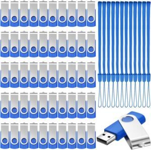 50 Pack 128 MB USB 2.0 Flash Drives Bulk with Lanyards USB Thumb Drive Swivel Bulk with LED Light Swivel Pen Jump for Office School Data Storage Backup(128 MB)
