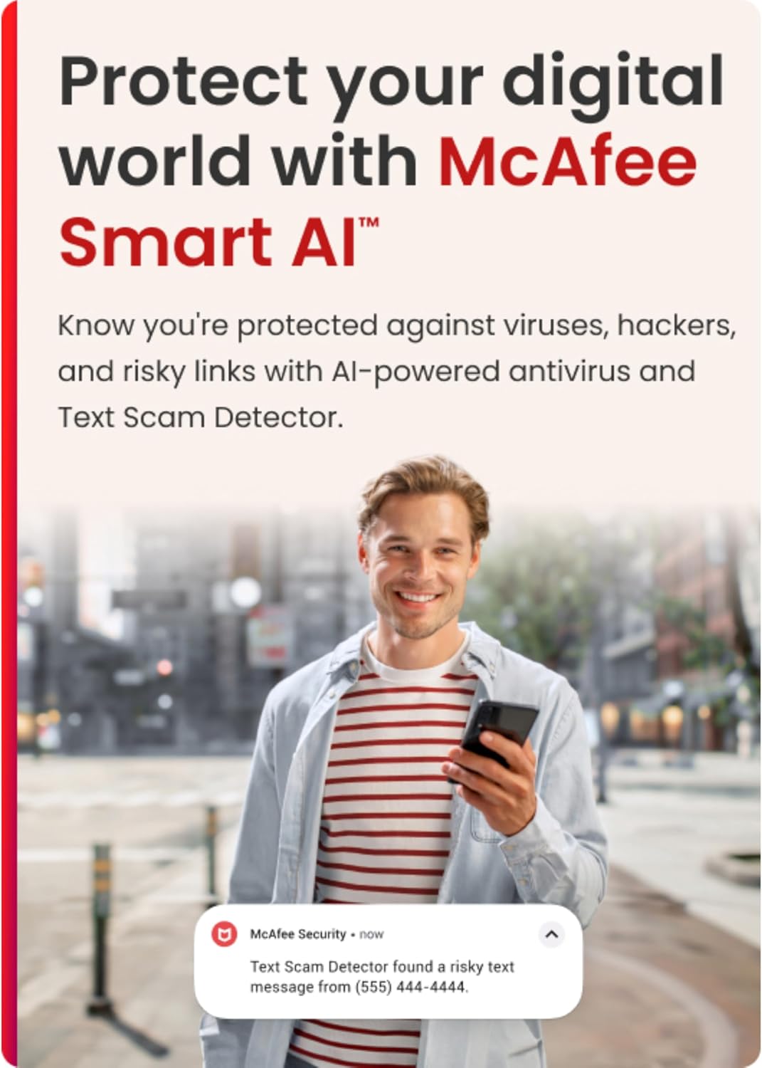 McAfee Mobile Security app puts your online safety first. With award-winning antivirus powered by AI, you can browse confidently knowing your mobile device is protected from the latest threats. Our Text Scam Detector, also powered by AI, helps you avoid risky links and potential fraud. Enjoy safe and private browsing with our built-in VPN, and rest easy knowing your personal information is safe with our Identity Monitoring feature. Plus, manage all your passwords securely with our Password Manager. Take control of your online security with McAfee Mobile Security.