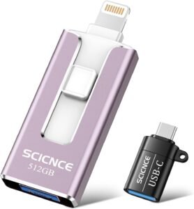 SCICNCE 512GB Flash Drives Intended for iPhone, Memory Stick Storage Backup Photos and Videos, Plug and Play No Application Required Compatible with iPhone iPad Android and Computers (Light Purple) May 8, 2025