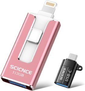 SCICNCE 512GB Flash Drives Intended for iPhone, Memory Stick Storage Backup Photos and Videos, Plug and Play No Application Required Compatible with iPhone iPad Android and Computers (Light Pink) May 7, 2025