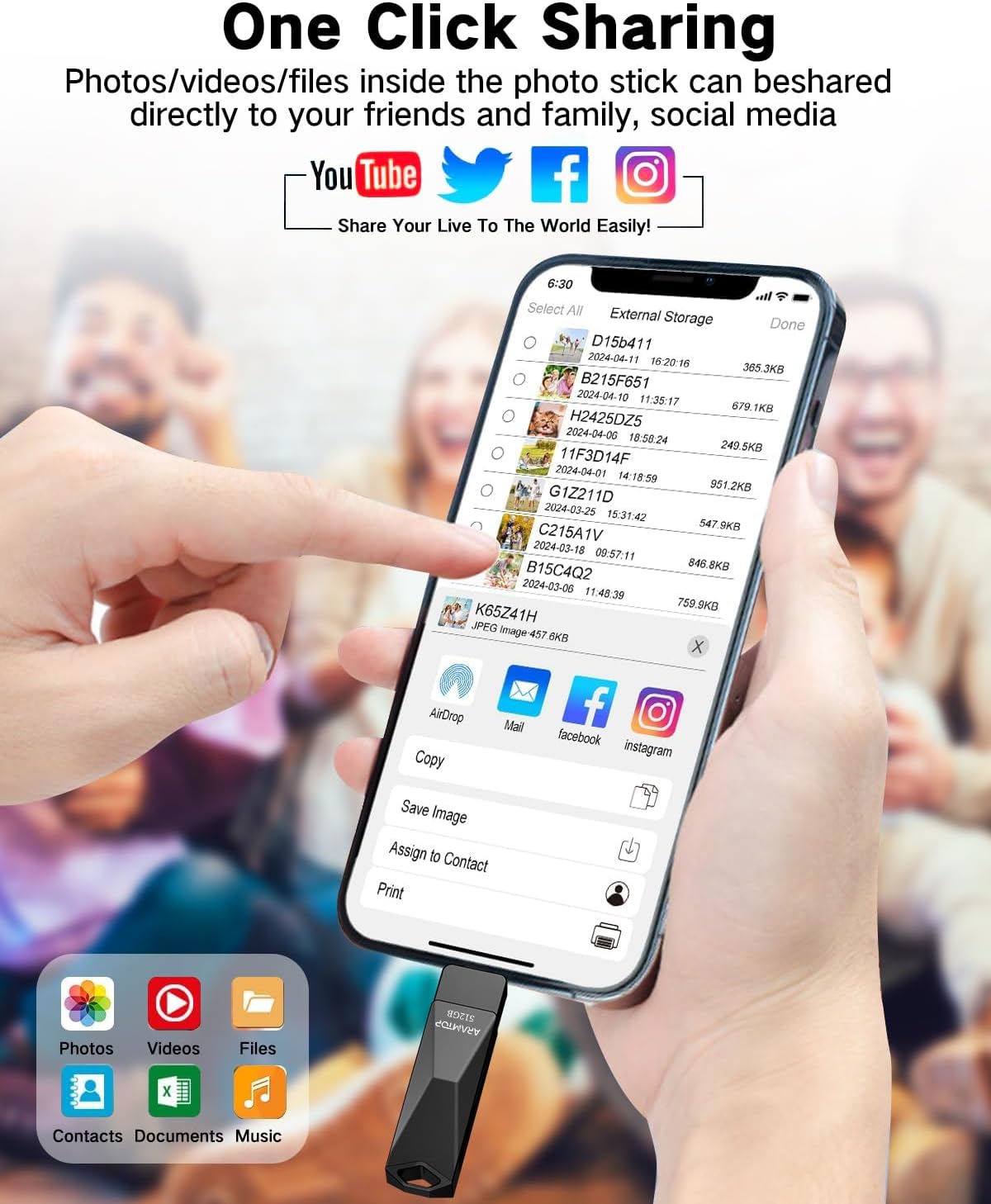 Share your photos, videos, songs and other files between iPhone picture stick easily. You don’t have to pay extra for additional storage, just insert iPhone external storage and enjoy the extra space of your flash drive.