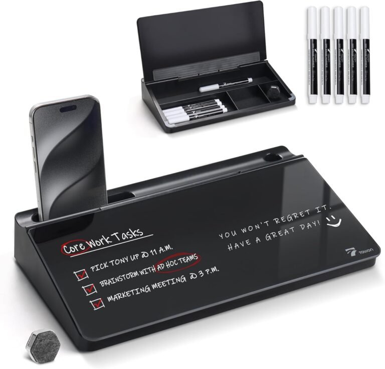 STORAGE FEATURES: Built-in phone stand and marker holder keep your essentials organized and easily accessible while maximizing desk space